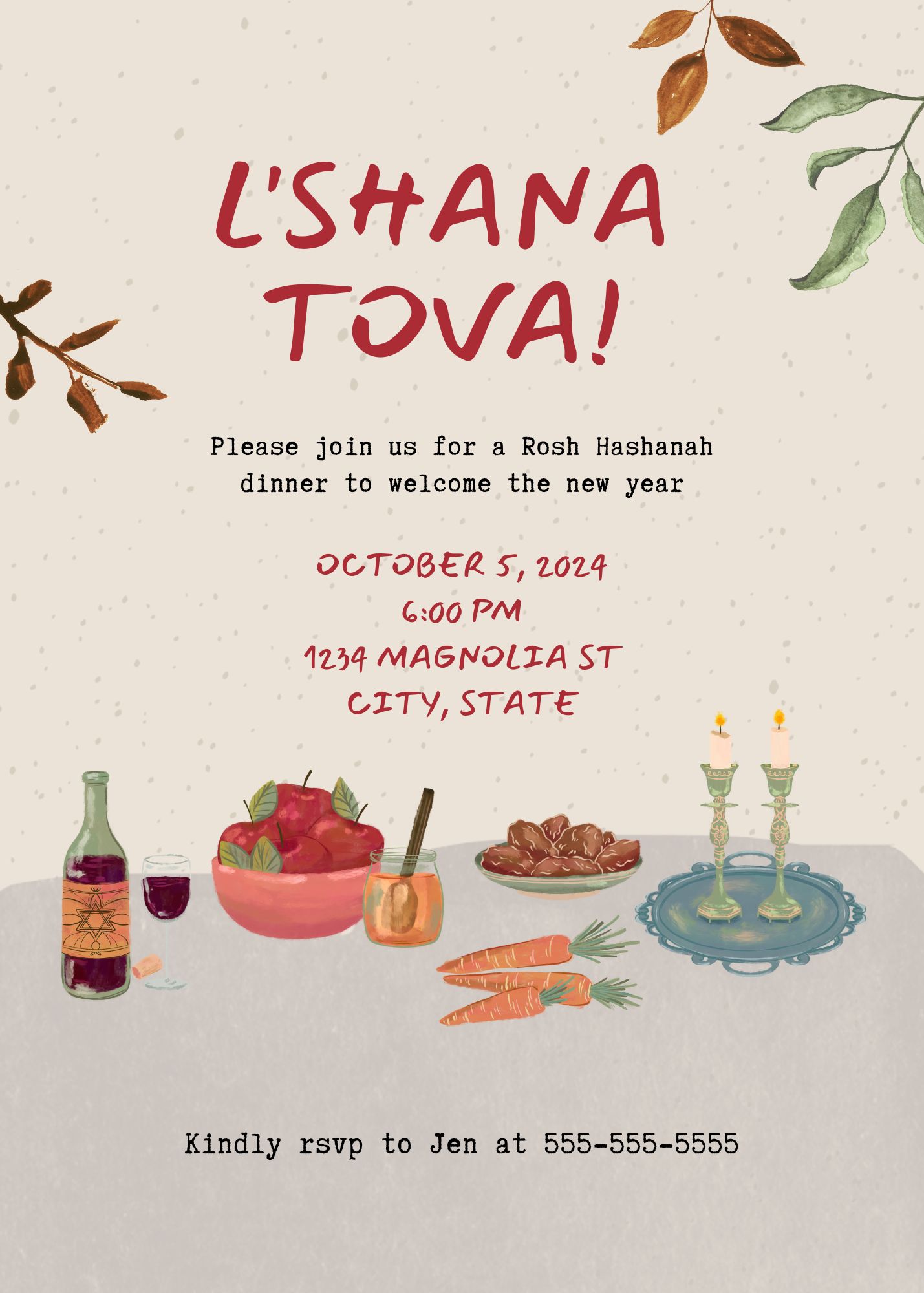 Neutral Color Rosh Hashanah Dinner Invitation